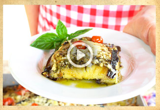 Stefania bereitet heute in der Küche einen Auberginenauflauf mit Basilikumpesto zu