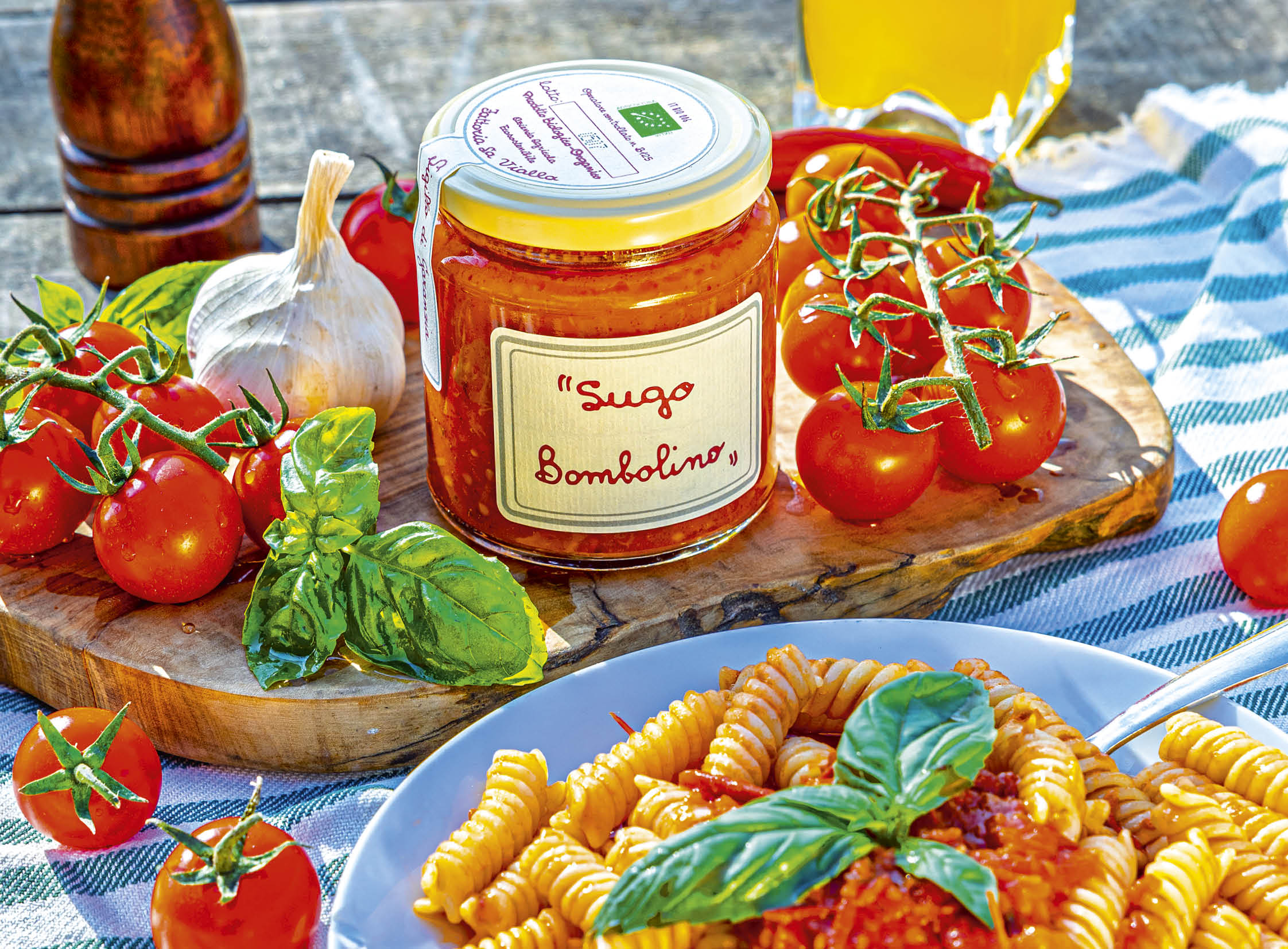 Diese köstliche Soße entsteht aus kleinen, wohlschmeckenden, festen und an Antioxidantien und Vitaminen reichen Tomaten, deren Duft sie in sich einschließt. Kurz gekocht, mit Olivenöl, Salz, Basilikum und Chili gewürzt richtet sie alle Pastaformate an; sie ist ein Jolly, um „weicheren” Soßen Geschmack und Schärfe zu verleihen, wie der aus Paprikaschoten, der Rosalina, der Peperotta, dem Pesto....