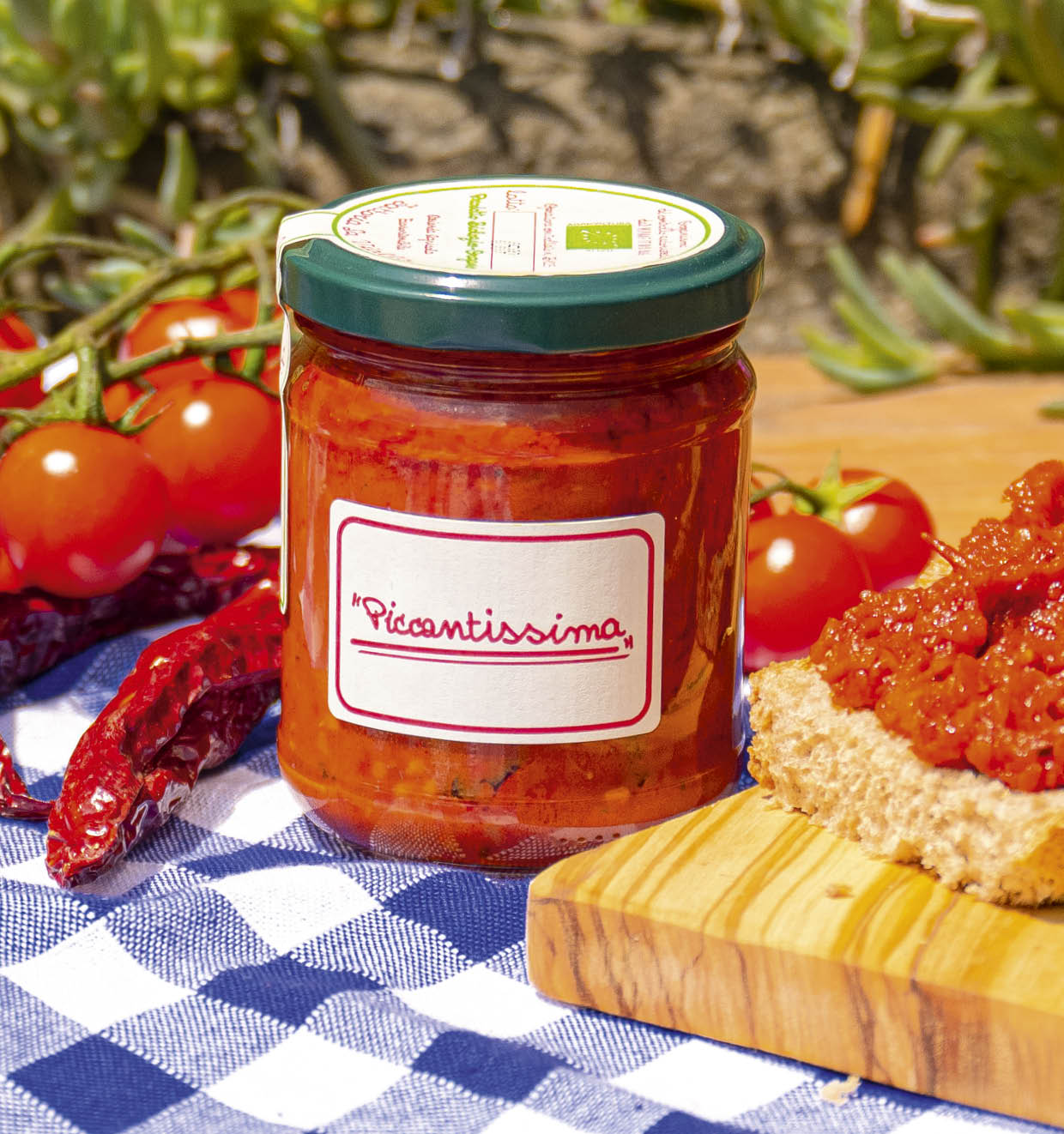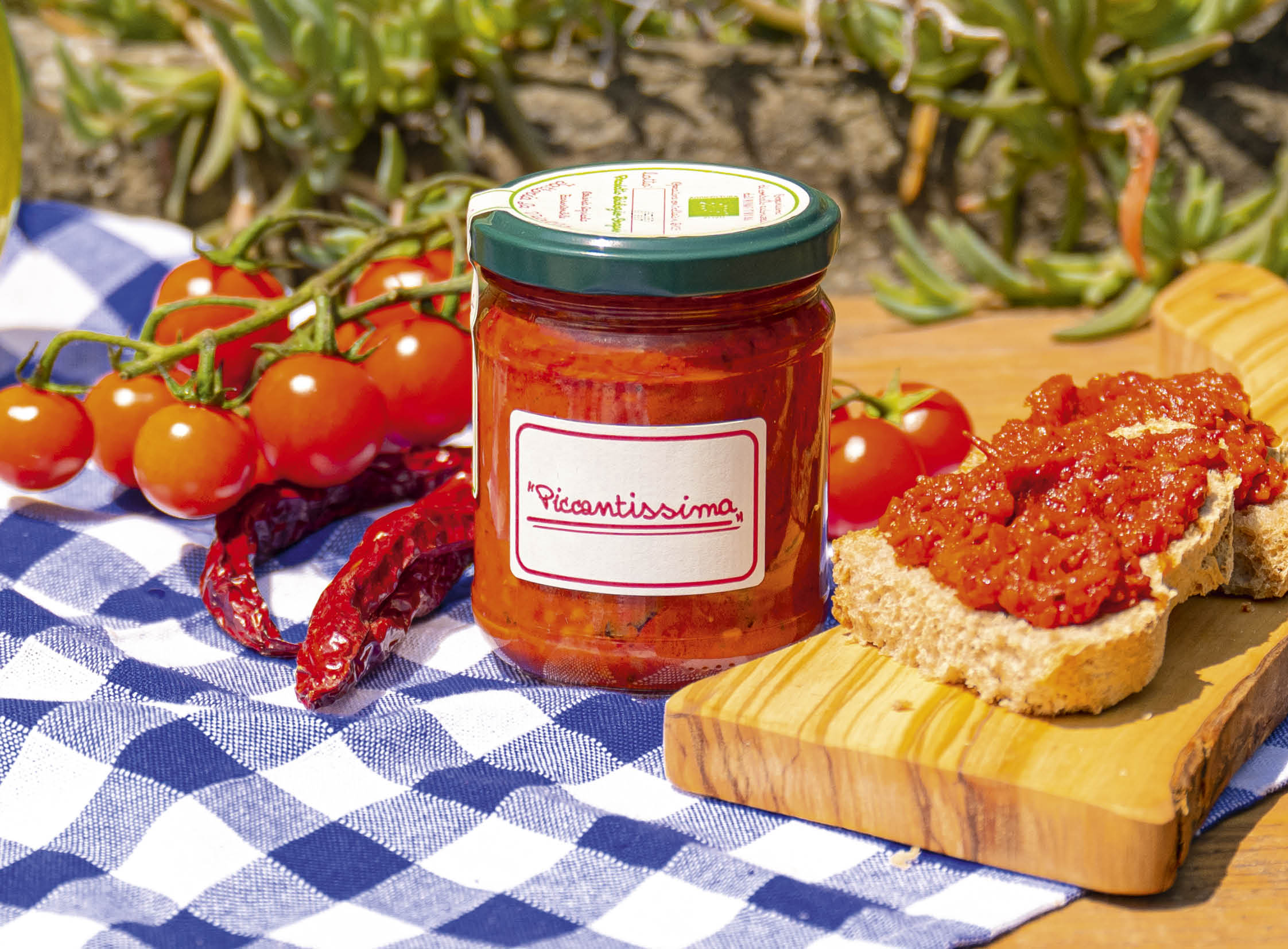 Leuchtend orangefarben und intensiv nach Paprika duftend dominiert im Mund ihre Schärfe. Die dickflüssige Konsistenz und die natürliche Süße (welche die „goldene“ Zwiebel als Mitgift in das Rezept einbringt) gleichen den scharfen Geschmack perfekt aus und machen sie zu einem sehr würzigen und vielseitigen „Sößchen“. Die „Piccantissima“ hebt den Geschmack vieler häuslicher Zubereitungen hervor, ohne ihn zu überdecken. Für die Mutigsten, die Scharfes lieben, ist diese Soße ganz einfach auf ein Stück geröstetes Weißbrot gestrichen köstlich pikant und schmackhaft. Sie eignet sich hervorragend, um vielen Zubereitungen, von Tomatensoßen über Hülsenfrüchtesuppen bis hin zu Ragouts, gegrilltem Fleisch und Gemüse, hausgemachten Hamburgern (auch vegetarischen) einen Hauch von „Verschmitztheit“ zu verleihen. Perfekt zu Siedfleisch oder Fondue Bourguignonne, um Spaghetti „Aglio, Olio e Peperoncino“ (= Spaghetti mit Knoblauch, Olivenöl und Chili) den letzten Schliff zu geben und als „Geheimzutat“ auf einer Pizza mit scharfer Salami!