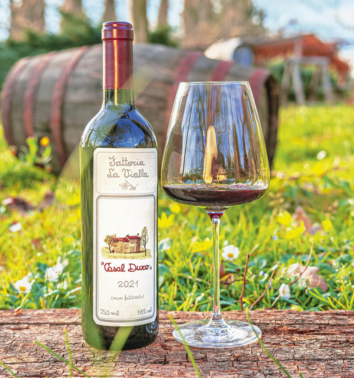 Een belangrijke, krachtige en elegante rode wijn, afkomstig uit een van de hoogste wijngaarden van de Fattoria: de minerale en schistachtige bodem (”duro” (= ‘hard’) zoals zijn naam), de ligging, de wind en de koele zomernachten creëren ideale omstandigheden voor de Super Tuscan van La Vialla. De twee druivensoorten hebben zich met dikke schillen goed aangepast aan de verzengende hitte van de afgelopen jaren en worden ook beschermd door het gebladerte dat mag groeien. Na de oogst, die handmatig wordt gedaan, vindt de gisting apart plaats (17 dagen voor de merlot-druiven en 22 dagen voor de cabernet-druiven), en ook de verfijning van minstens 24 maanden in barriques. Na de assemblage wordt het werk afgerond met 12 maanden verfijning in de fles.