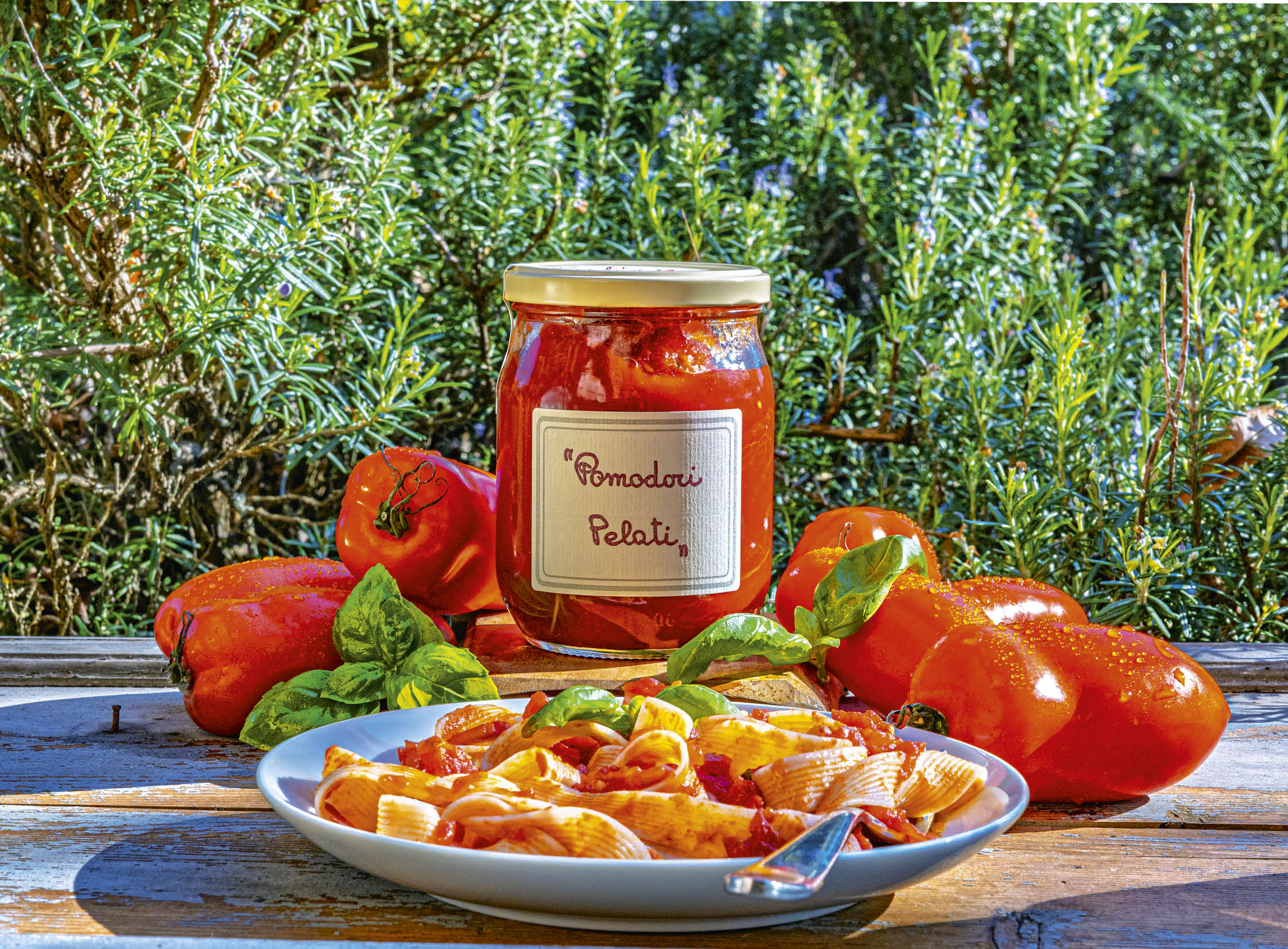At the Fattoria the tomatoes, ripened in the summer sun, are prepared using a “home cooking” recipe: blanched in salted water for 2 minutes, cooled down, peeled and put into jars with tomato juice. Plump and rich in flavour, for creamy sauces – not cooked at length – and all recipes that require tomatoes.