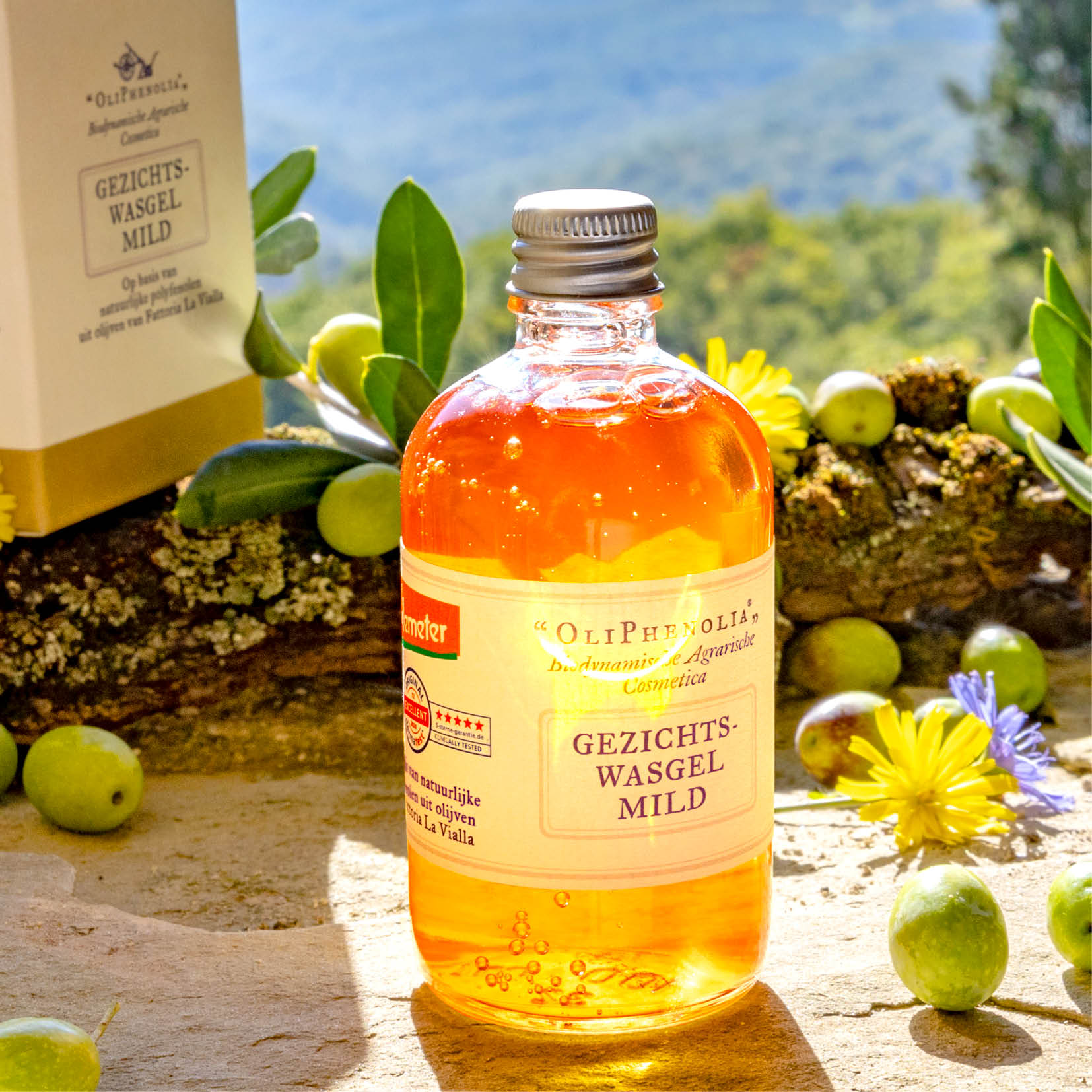 Voor de dagelijkse reiniging van het gezicht is het belangrijk om de huid niet te belasten of uit te drogen, maar zachtjes te ontdoen van microstoffen, make-up - ook van de ogen -, bacteriën en alle onzuiverheden. De milde wasgel is rijk aan ultrazuiver water en heeft een lagere concentratie OliPhenolia dan de intensieve wasgel. De gel heeft een pH-waarde die gelijk is aan die van de huid. Hij is geschikt voor de reiniging van elk huidtype dankzij het antibacteriele effect van de polyfenolen van OliPhenolia. Deze hebben een antioxidant, ontstekingsremmend1 en kalmerend effect op de epitheelcellen (en bevorderen zo een uniforme teint).