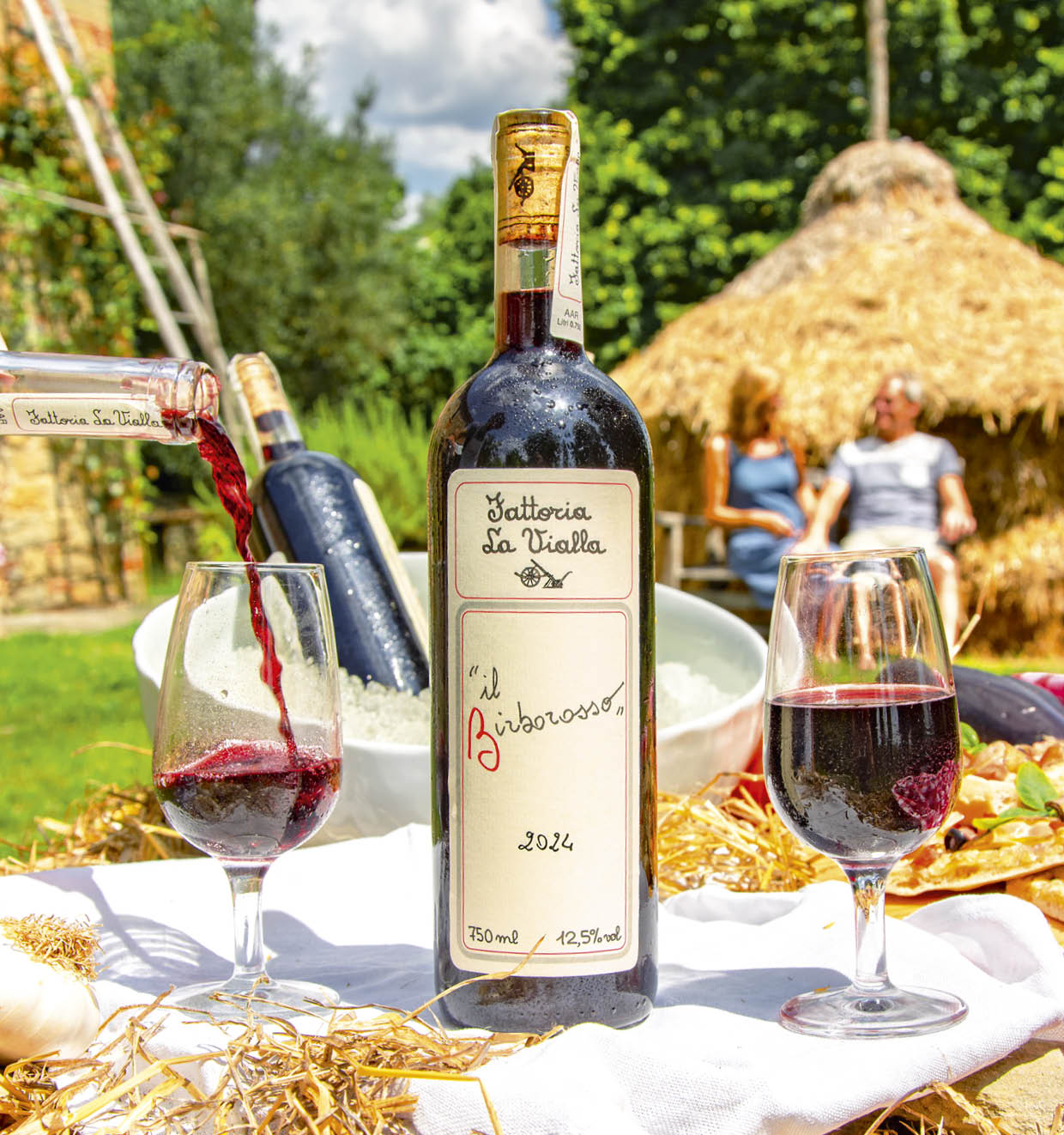 ... een witte wijn 'gekleed' in rood, licht, geurig, niet te tanninerijk, perfect zelfs in de zomer omdat hij koel kan worden gedronken. In 2023 nam de Birborosso een pauze - een ongeschikt jaar voor zo'n speciale wijn - maar in 2024 is hij weer helemaal terug, na een seizoen met Montepulciano-druiven vol aroma's, polyfenolen en anthocyanen (verantwoordelijk voor de kleur) en frisse sangiovese-druiven. De koude maceratie (rond de 6 °C gedurende minder dan een week) zorgt ervoor dat de zoete en lichte polyfenolen worden geëxtraheerd, terwijl de fermentatie, ook bij een lage temperatuur, de aroma's van de druivensoort en de levendige kleur van de schillen behoudt. De kenmerkende structuur van de sangiovese is aanwezig maar wordt verzacht door de verwerking en door de blend met de Montepulcianodruiven, die elegantie en geur geven. Het resultaat is een uitgesproken onconventionele, originele, verrassende rode wijn, zoals de Toscaanse naam Birborosso ('Birbo', birbante = kwajongen) ons vertelt.